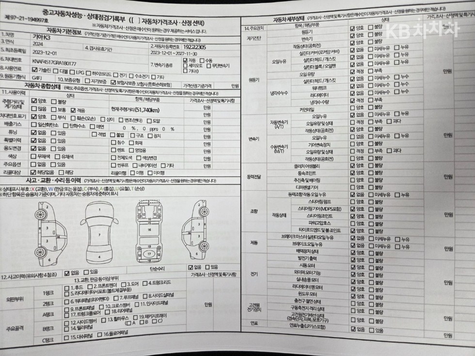 - KB진단차는 KB차차차가 확인한 무사고 차량입니다.